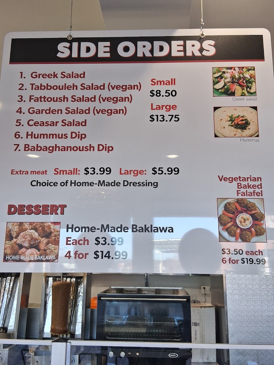 - Wraps: Generous portions of freshly prepared meat or falafel, bursting with flavor.